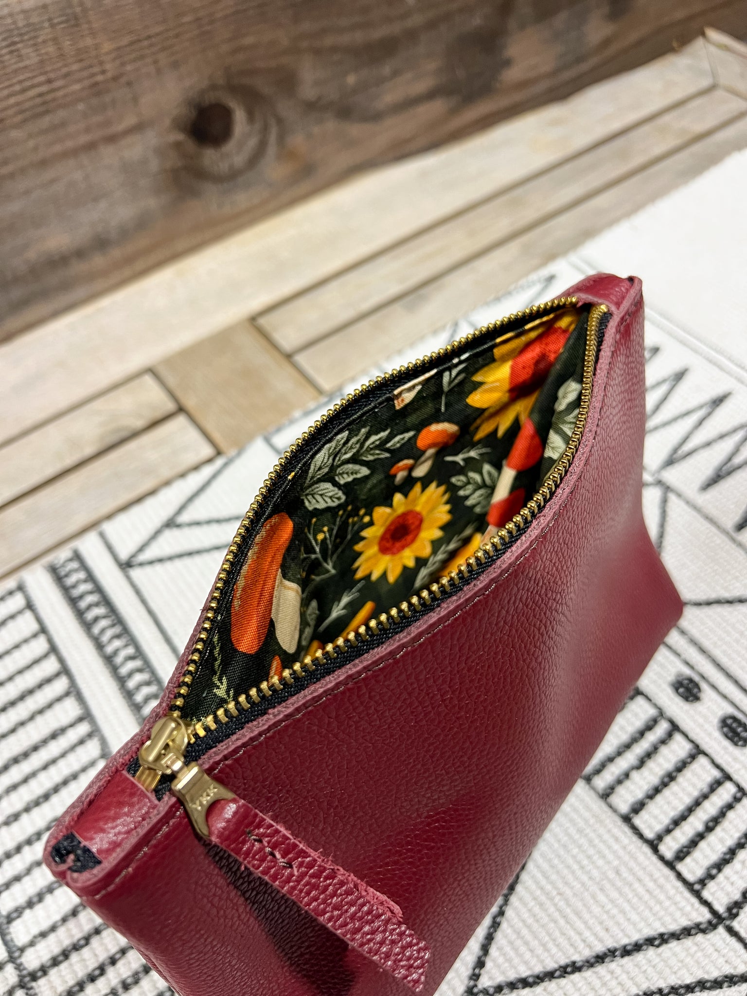 This is in our Strawberry Jam and lined in our Mystical Forest Mushrooms fabric.