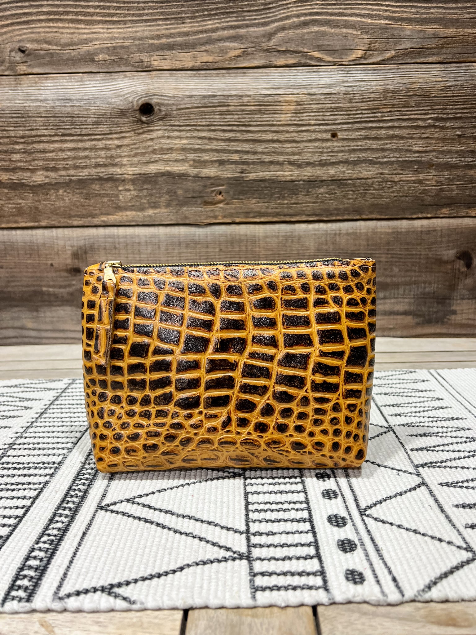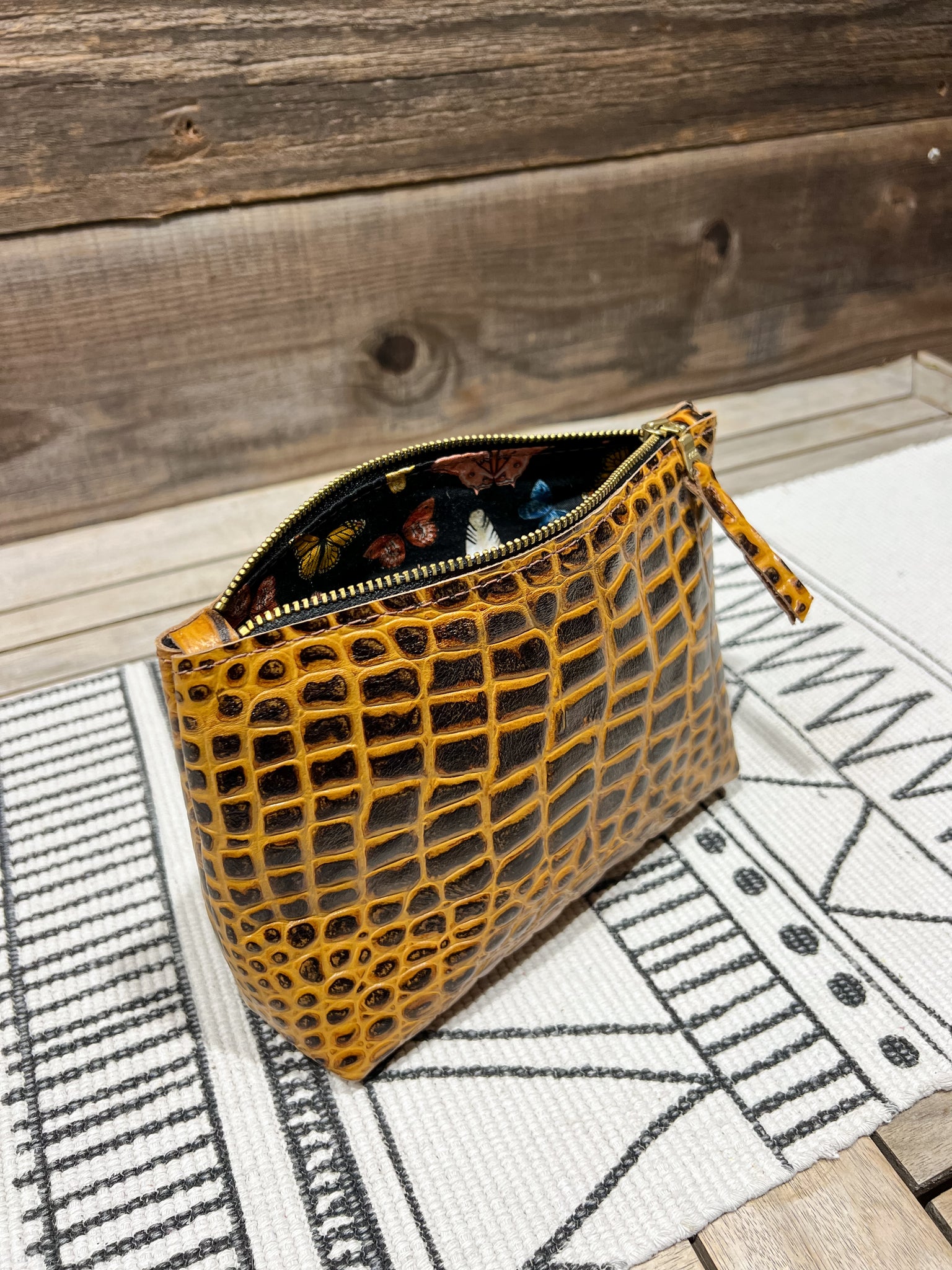 This is in our Embossed Gator (Caramel Latte) and lined in our Fluttering Butterflies fabric.
