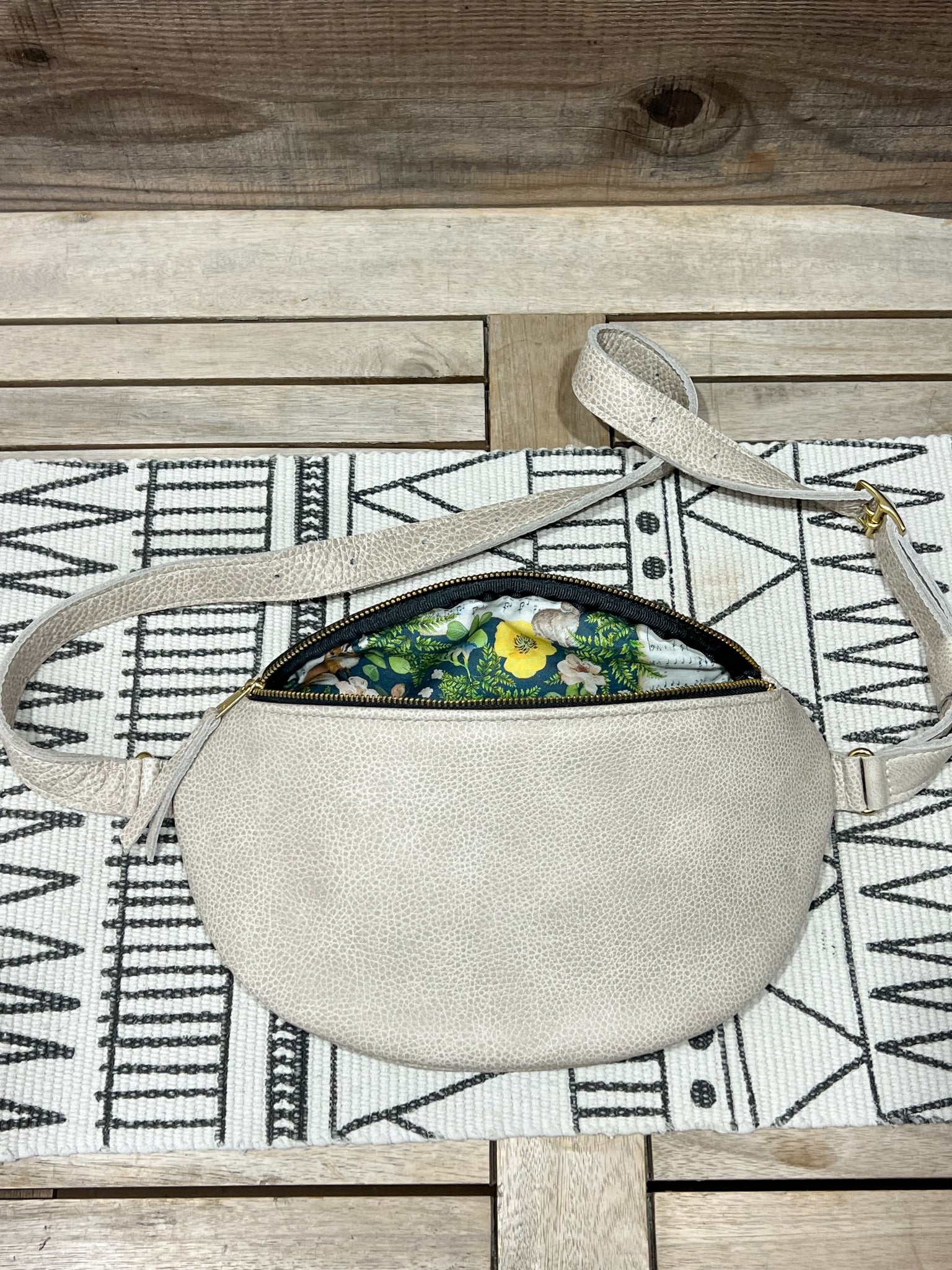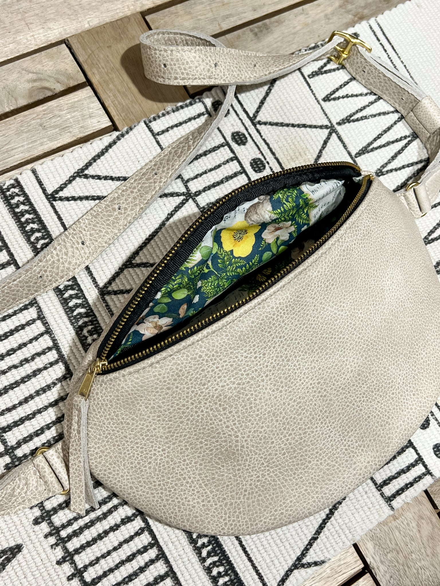 The leather is in our Ivory White and lined in our Storybook & Floral fabric.
