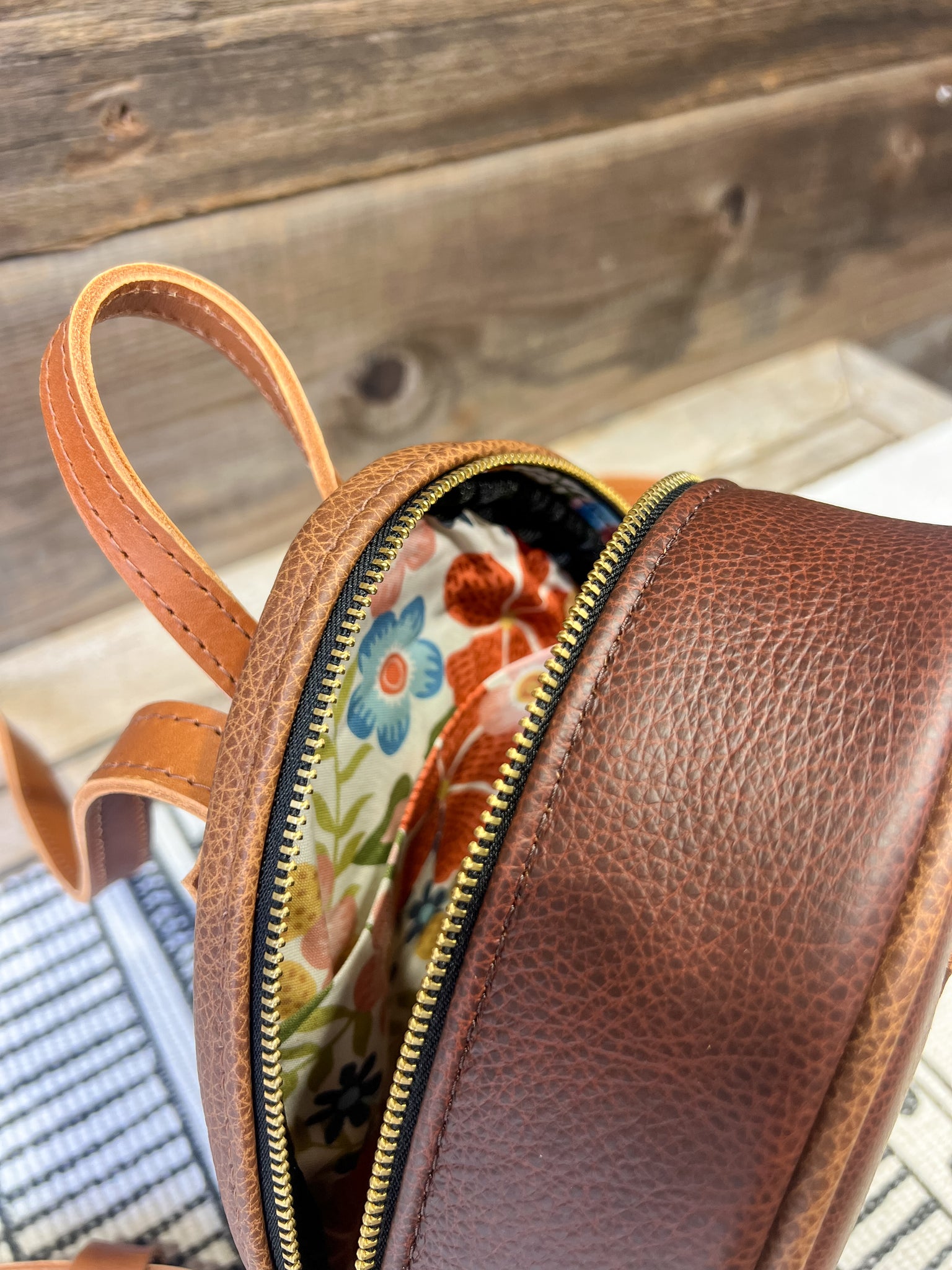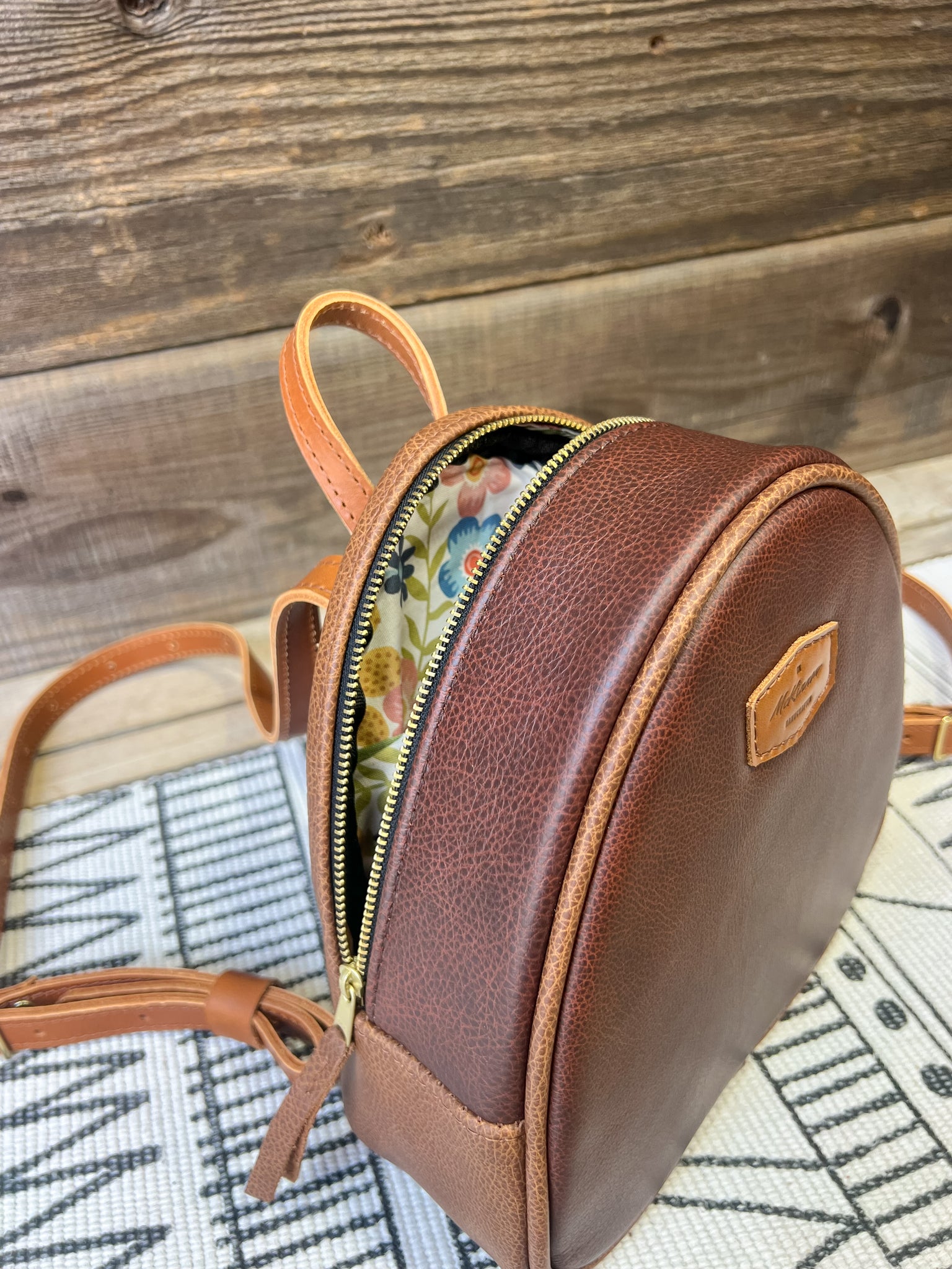 The leather is in our Brown Sugar Mix which includes our Hot Cocoa & Dark Espresso Hides for a Two-Toned look and lined in our Boho Inspired Floral fabric.